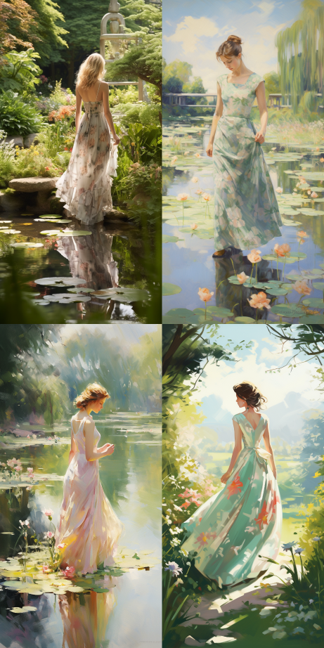 Midjourney Bot 更新时间:2023-08-30 09:24In a tranquil garden, a woman in a floral dress walks alone. She has a tall and well-proportioned figure, showcasing graceful curves. The bright sunlight falls on her slightly pale skin, emitting a warm radiance. She possesses a pair of crystal-clear eyes, resembling two clear lakes, exuding an intelligent and gentle aura. The floral pattern on her dress seems to have been plucked from nature itself, delicate flowers and leaves intertwining to create a captivating picture. Behind her, birds sing joyfully, as if accompanying her. This woman exudes a sense of tranquility, as if bestowed with a unique charm by nature. --c 6 --iw 2 --ar 1:2 --v 5.2