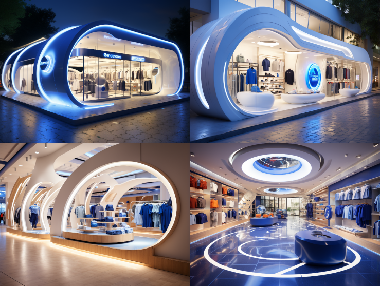 Midjourney Bot 更新时间:2023-08-30 09:26Long shot, concept children clothing store store design,Used in clothing industry, metal plate, line light, simple display, blue outside and white inside, located in shopping center, organic, ecological architectural style,Futuristic, basketball sports theme, 4K, hyper detailed, realistic,Erik Nitsche::2 --s 237 --ar 4:3 --style raw --v 5.2