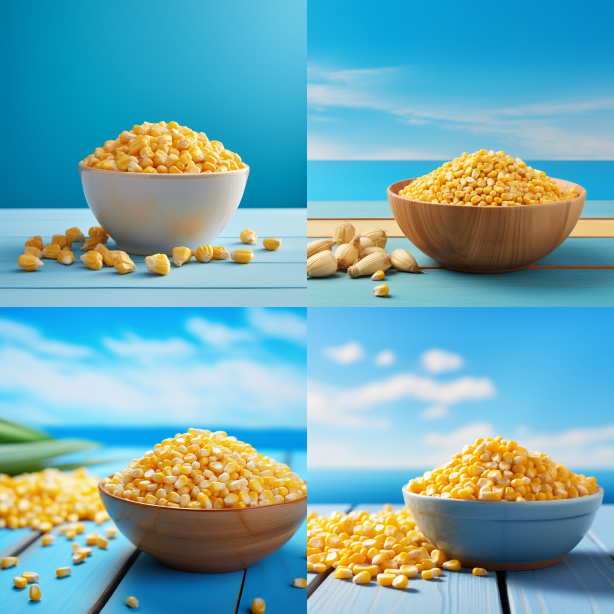 Midjourney Bot 更新时间:2023-08-30 09:25Corn kernels in a bowl with a sky blue background, bowl on a wooden table, with full corn kernels --ar 1:1 --style raw --v 5.2