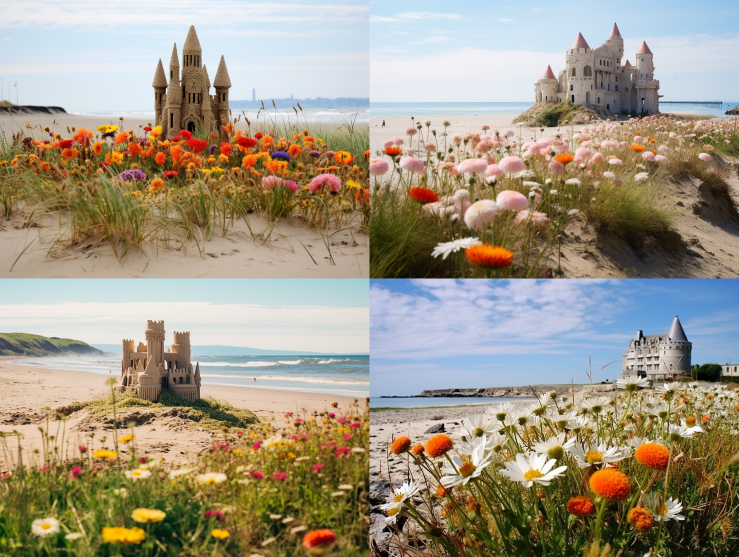 Midjourney Bot 更新时间:2023-08-30 09:27Beach Castle, Flower Grassland, Monet Style --ar 4:3 --style raw --v 5.2