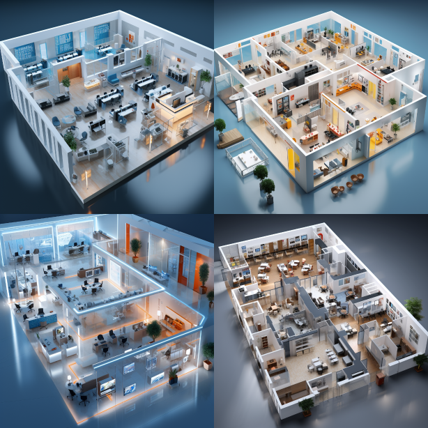 Midjourney Bot 更新时间:2023-08-30 09:04Administrative office space, layout of multiple different functional areas, such as reception area, office area, conference room, rest area, transparent partitions and large windows, and selection of office furniture that conforms to ergonomic principles --ar 1:1 --style raw --v 5.2