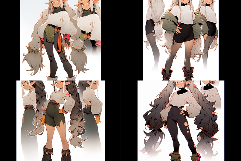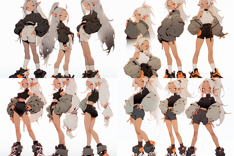 Midjourney Bot 更新时间:2023-08-30 08:36, three views, front view, left view, back view, full body, style by Miyazaki Hayao, character sheet 8k,character design::30,character sheet::20,reference sheet::31 --s 180 --iw 1.5 --ar 3:2 --style expressive --niji 5