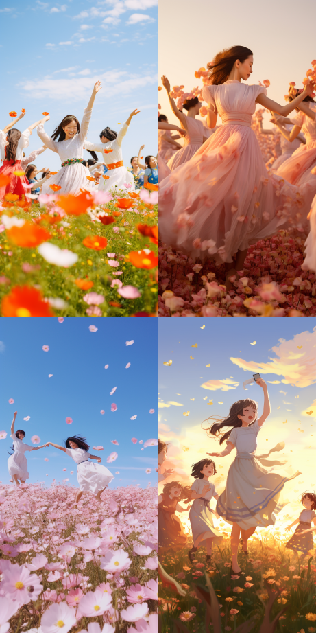 Midjourney Bot 更新时间:2023-08-30 08:27A group of girls dancing in the flower sea --ar 1:2 --style raw --v 5.2