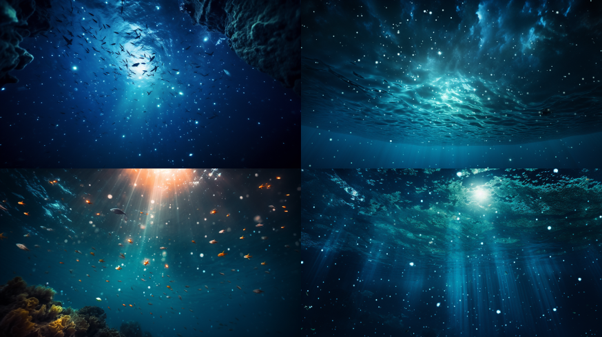 Midjourney Bot 更新时间:2023-08-30 08:57Looking up at the stars from the bottom of the sea. --ar 16:9 --style raw --v 5.2