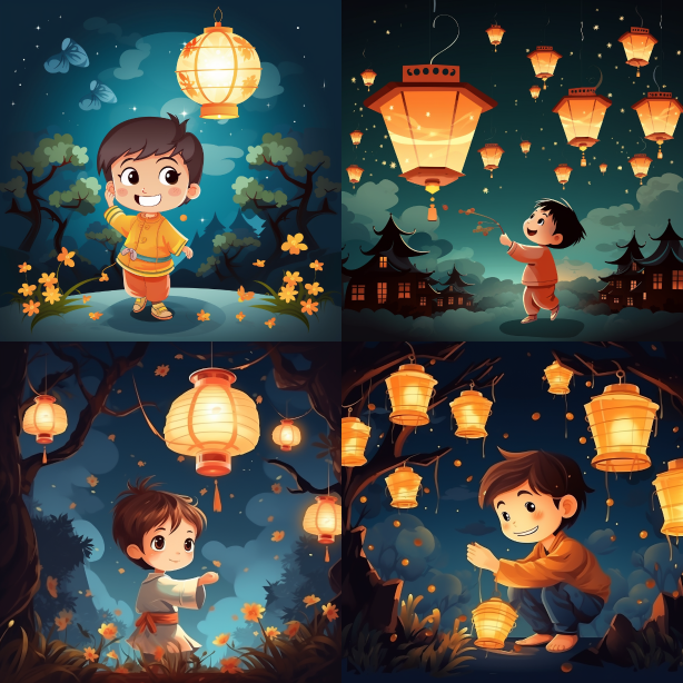 Midjourney Bot 更新时间:2023-08-30 08:08A lantern of trams, Hong Kong characteristics of the Mid Autumn Festival --ar 1:1 --style raw --v 5.2