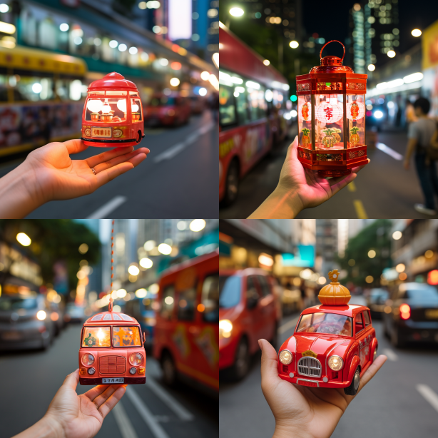 Midjourney Bot 更新时间:2023-08-30 08:18A lantern of red taxi car, on a hand, Hong Kong characteristics of the Mid Autumn Festival --ar 1:1 --style raw --v 5.2