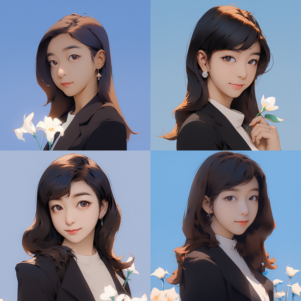 Midjourney Bot 更新时间:2023-08-30 09:09The photography work of Disney Pixar Studio, dressed in a black suit, Disney style girl, thin face, temperament girl, simple white background, big eyes, wearing glasses, no wrinkles, Pixar level super details, clay texture, reflective transparent rainbow color, soft past tones, model display, delicate luster, clean background, 3D rendering, soft focus, processed using software such as Octane and Blender, Best Picture Quality --ar 1:1 --style raw --v 5.2