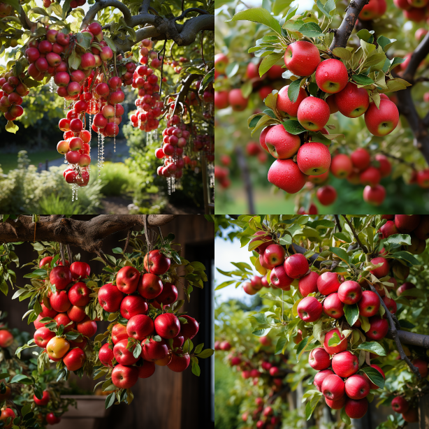 Midjourney Bot 更新时间:2023-08-30 05:05The tree is filled with red and green apples hanging from its branches. --ar 1:1 --style raw --v 5.2 --s 250