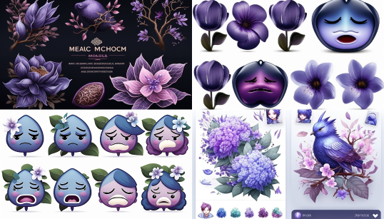 Midjourney Bot 更新时间:2023-08-30 04:22Blue purple magnolia's WeChat Q version emoticon pack --s 501 --c 52 --ar 16:9 --v 5.2