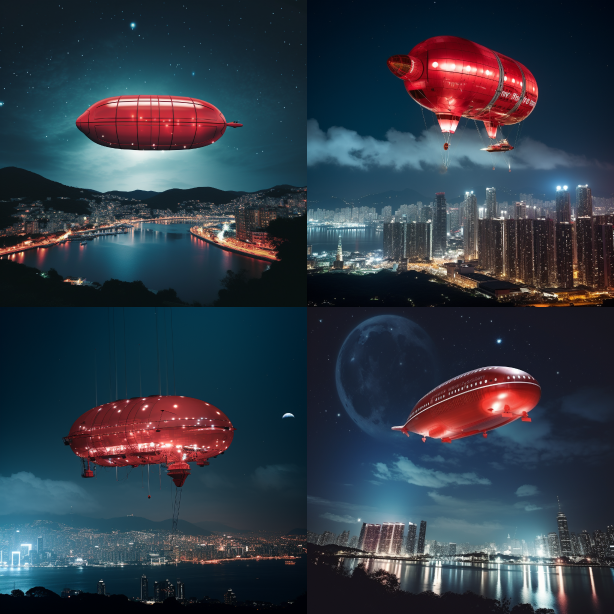 Midjourney Bot 更新时间:2023-08-30 04:24Flying blimp make out of Hong Kong red tax, night sky with full moon background; Style of wallpaper magazine photo --s 250 --ar 1:1 --style raw --v 5.2