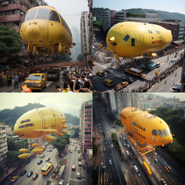 Midjourney Bot 更新时间:2023-08-30 04:19Flying blimp make out of Hong Kong taxi, style of national geographic photo --s 250 --ar 1:1 --style raw --v 5.2