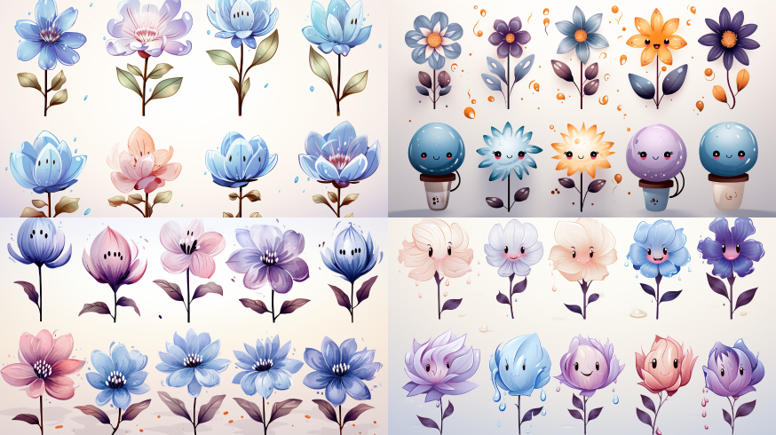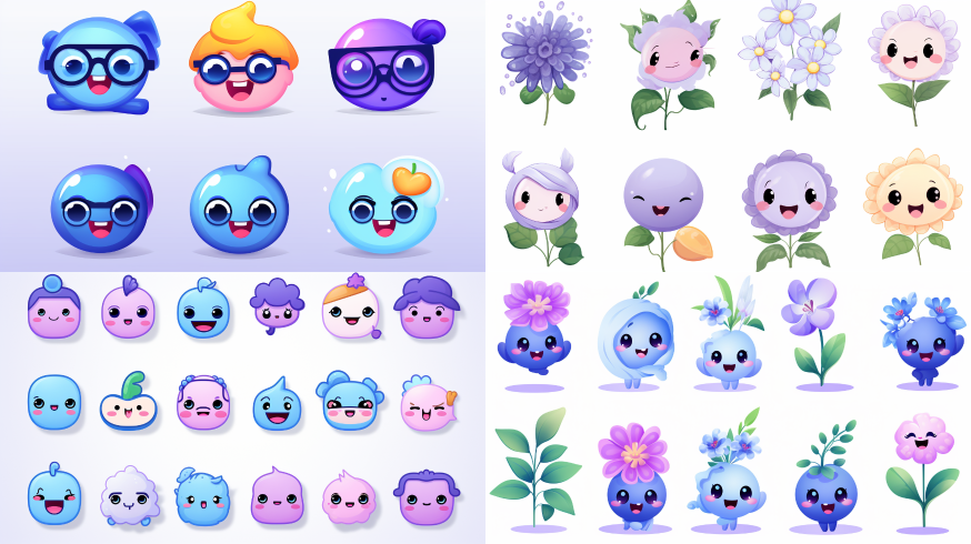 Midjourney Bot 更新时间:2023-08-30 04:00WeChat emoji pack, magnolia, blue purple, silly and cute Q-version simple pen --ar 16:9 --style raw --v 5.2 --s 750