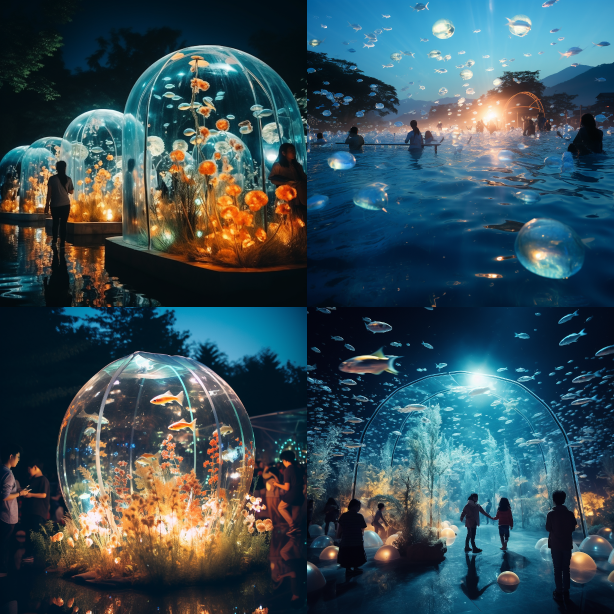 Midjourney Bot 更新时间:2023-08-30 03:47Autumn festival lands which make of plastic filled with light and look like aquarium, fashion photography, full moon sky, close up --ar 1:1 --style raw --v 5.2
