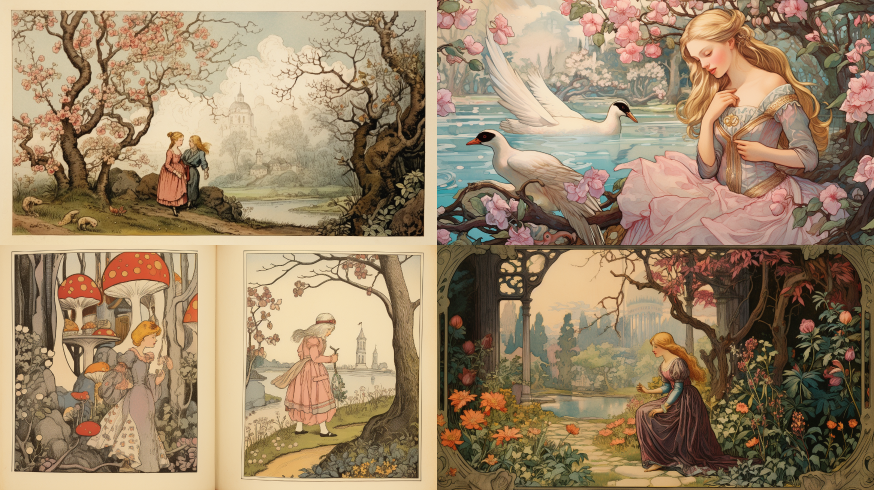Midjourney Bot 更新时间:2023-08-30 04:08Illustrations of Andersen's Fairy Tales of Magnolia --ar 16:9 --style raw --v 5.2