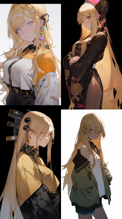 Midjourney Bot 更新时间:2023-08-29 19:26A girl with long golden hair stands facing forward in a semi-realistic anime style. She is wearing a flapper outfit inspired by the character Inuyashiki from the game Overwatch. --ar 9:16 --style expressive --niji 5