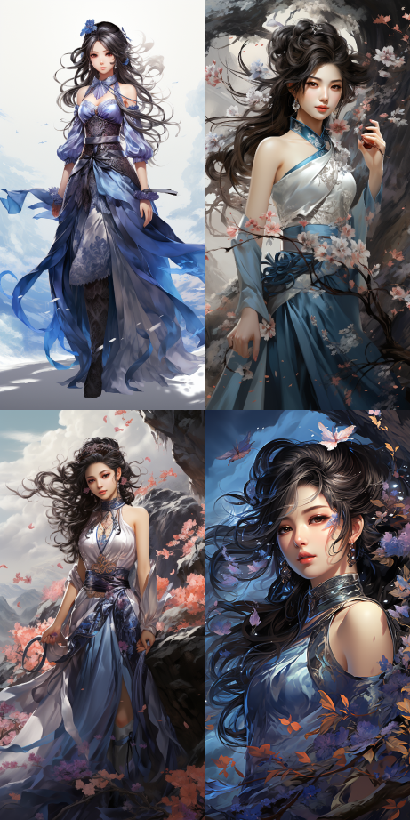 Midjourney Bot 更新时间:2023-08-29 14:47Chinese anime characters, with light purple and light blue styles, beautiful women, long black hair, exaggerated features, purple tones, full body, anime style, Pavilion:: 3 --s 417 --ar 1:2 --style raw --v 5.2