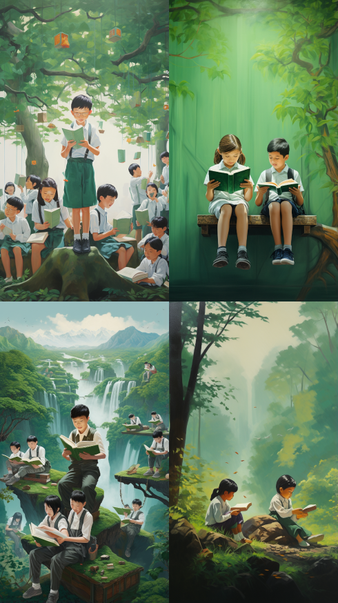 Midjourney Bot 更新时间:2023-08-29 14:53Primary school students reading, rejecting harmful content, with a green background or in Chongqing's unique environment --c 6 --ar 9:16 --v 5.2