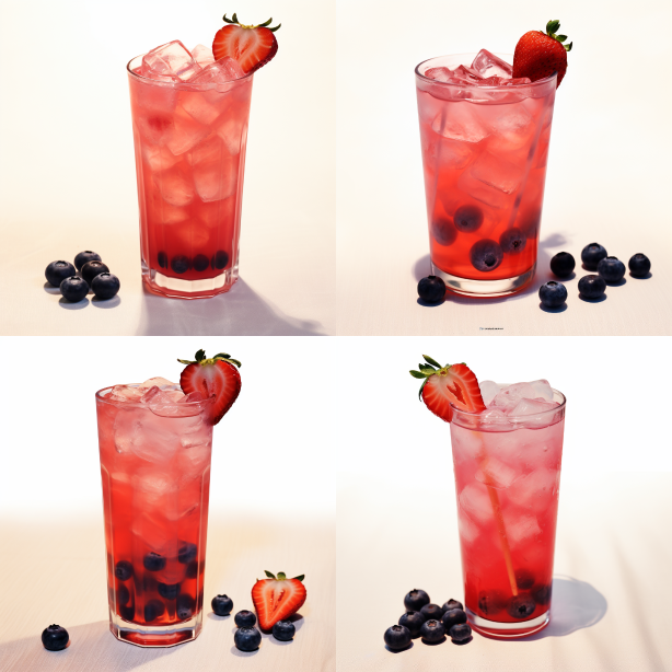 Midjourney Bot 更新时间:2023-08-29 14:18A cocktail with strawberries and blueberries inside, rich in content, low in color saturation, and a watercolor style --no Architecture, Human --ar 1:1 --style raw --v 5.2