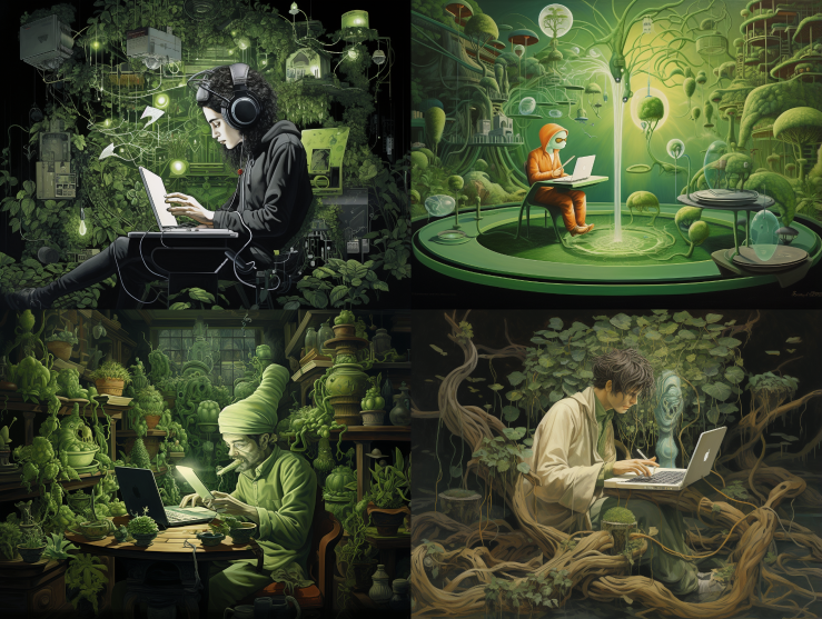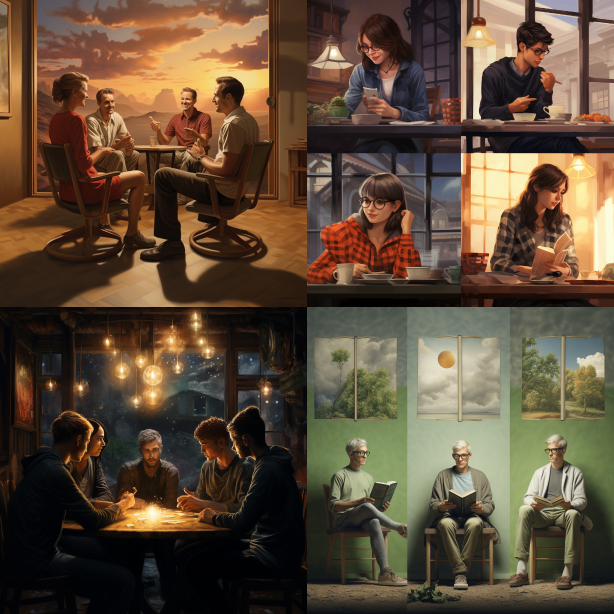 Midjourney Bot 更新时间:2023-08-29 13:33Mutual assistance and healthy growth, rejecting harmful content; Drawing creation around "green reading, civilized internet access" and other topics --c 6 --ar 4:3 --v 5.2