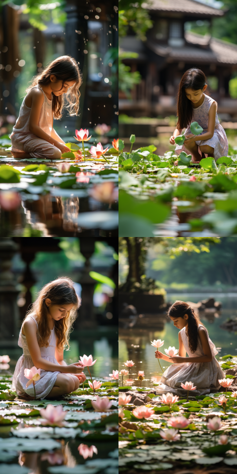 Midjourney Bot 更新时间:2023-08-29 13:24A girl is playing by the lotus pond. --ar 1:2 --style raw --v 5.2 --s 250
