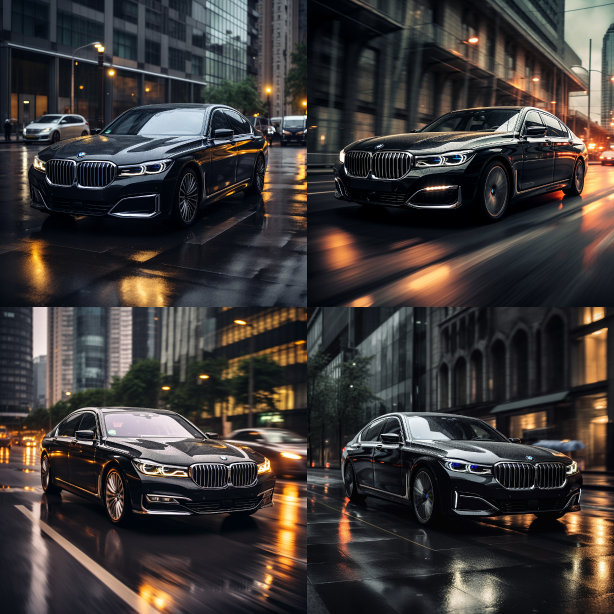 Midjourney Bot 更新时间:2023-08-29 13:28Masterpiece, high-quality, 8K, 16 BMW 730LI samurai black, high-speed driving on rainy nights --ar 1:1 --style raw --v 5.2