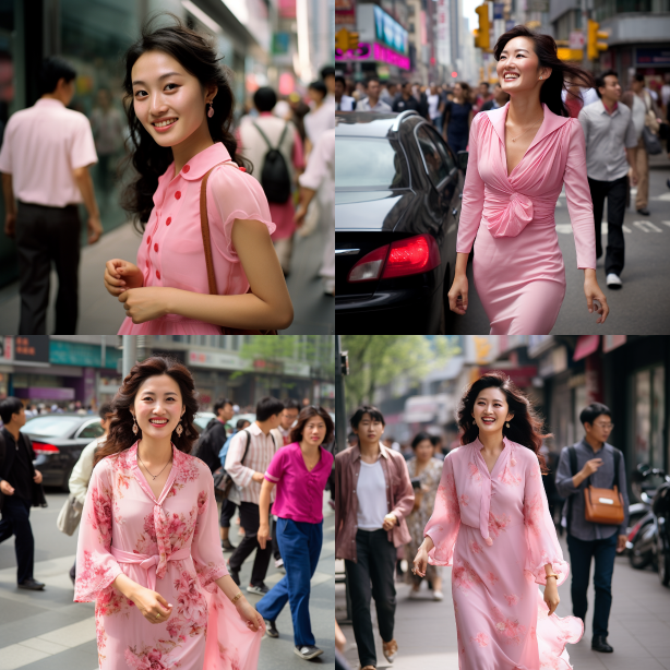 Midjourney Bot 更新时间:2023-08-29 09:09A Chinese woman dressed in pink appeared on a busy street. Her attire was simple yet fashionable, showcasing the confidence and individuality of modern urban women. Her slightly plump figure gave off a warm and approachable feeling, highlighting her carefree attitude towards herself. She wore a loose-fitting dress, leisurely strolling while smiling and interacting with people around her. Under the sunlight, her skin radiated a healthy glow, and her long hair swayed gently in the breeze. Next to her was a modern cityscape, with tall buildings, neon lights, and bustling traffic, all creating a vibrant scene. In this street snapshot, her freedom and fashion were frozen in time, bringing people a sense of beauty and longing. --ar 1:1 --style raw --v 5.2