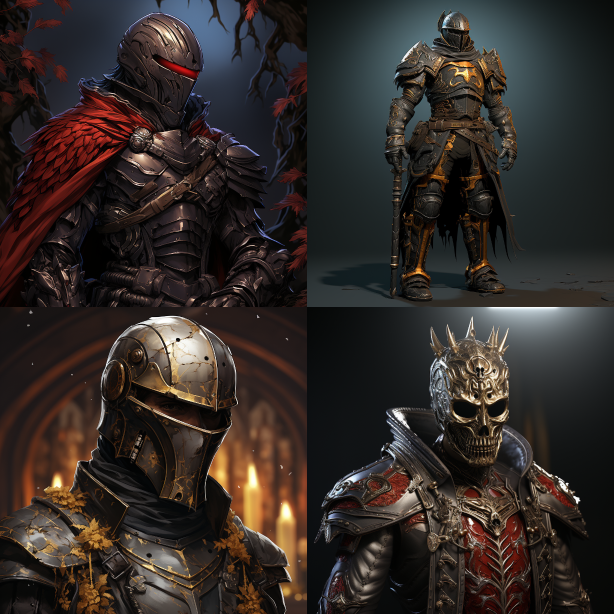 Midjourney Bot 更新时间:2023-08-29 09:11Black Knight, Necropunk: 5, dungeon, crown, Midnight, Half Body --s 450 --c 40 --ar 1:1 --style raw --v 5.2