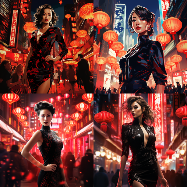 Midjourney Bot 更新时间:2023-08-29 09:11A modern and fashionable Chinese woman is wearing a gorgeous black qipao. The qipao designer cleverly incorporates red elements into the design, making the overall look more vibrant and eye-catching. Her figure is slightly plump, emphasizing health and confidence. She stands on a busy street, surrounded by towering modern buildings and shimmering neon lights. Passersby can't help but stop and admire, drawn to her unique style. The confidence and charm she exudes become an unforgettable street snapshot through the lens of the photographer. --ar 1:1 --style raw --v 5.2