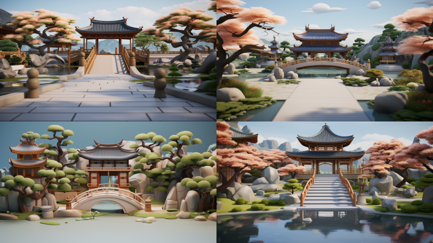 Midjourney Bot 更新时间:2023-08-29 08:523D, Chinese style garden --ar 16:9 --style expressive --niji 5