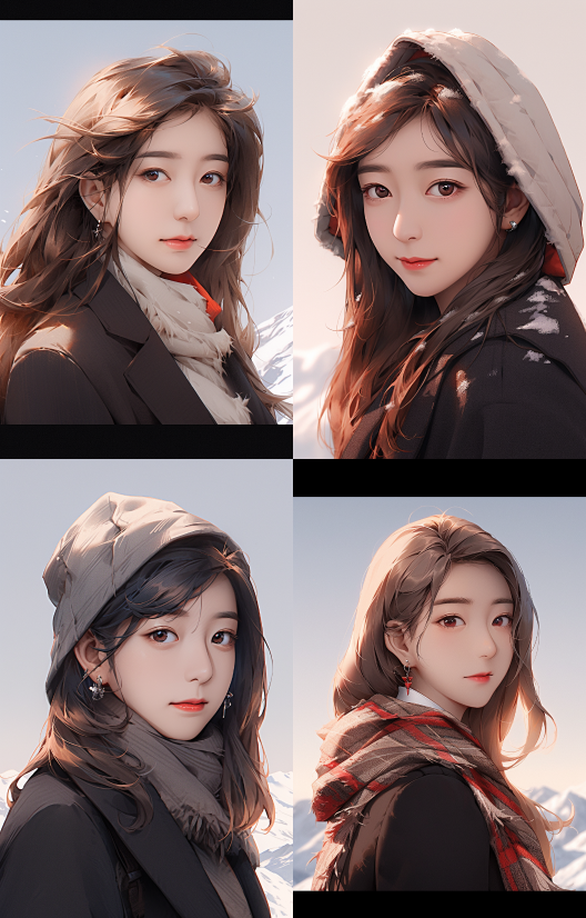 Midjourney Bot 更新时间:2023-08-29 09:11In the style of anime, a woman in winter clothing stands on a snowy peak, wind whipping her scarf. Close-up shot captures her determined expression. The environment is a snowy mountain range. Artist: Alex Strohl --ar 9:14 --s 400 --niji 5