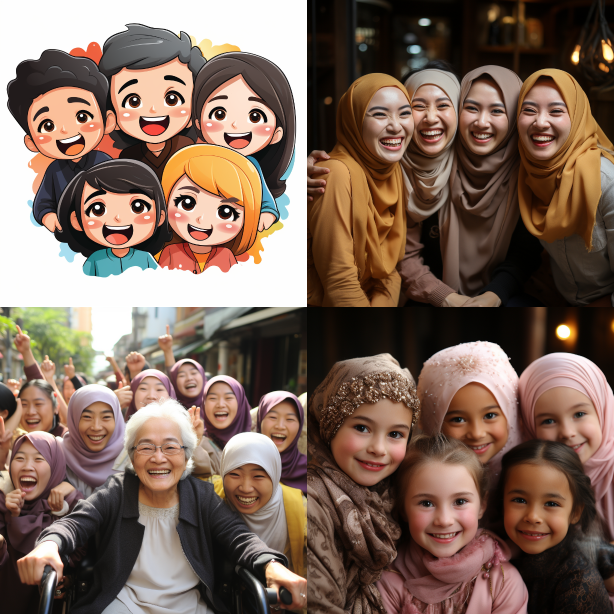 Midjourney Bot 更新时间:2023-08-29 09:16Group photo Malaysian multi races happy smiles --weird 1 --s 500 --c 20 --ar 16:9 --style raw --v 5.2