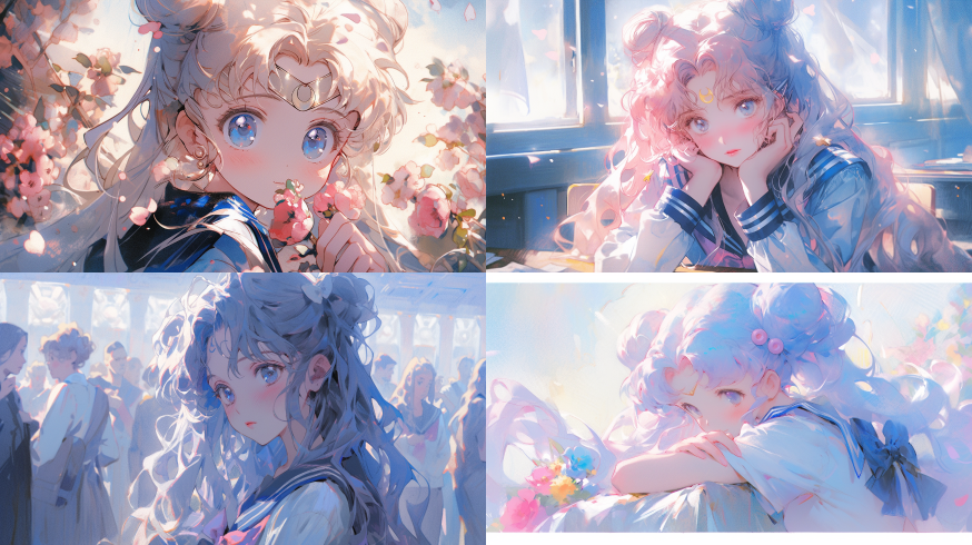 Midjourney Bot 更新时间:2023-08-29 02:11A Kimoto Sakura, Magic Girl Sakura, cute face, upper body, sitting, front, watercolor texture, oil painting texture, oil painting, Pastel: 2, Dream colors, Sailor Moon,Matte::2 ,Dream colors,Light-Blue --ar 16:9 --niji 5