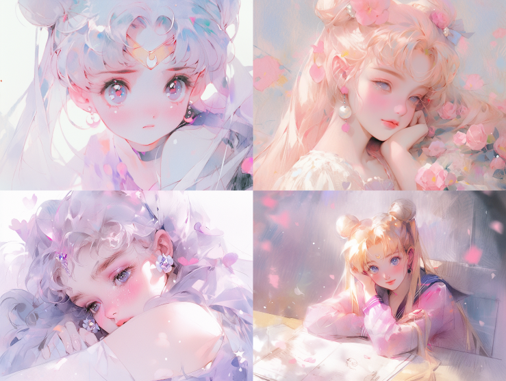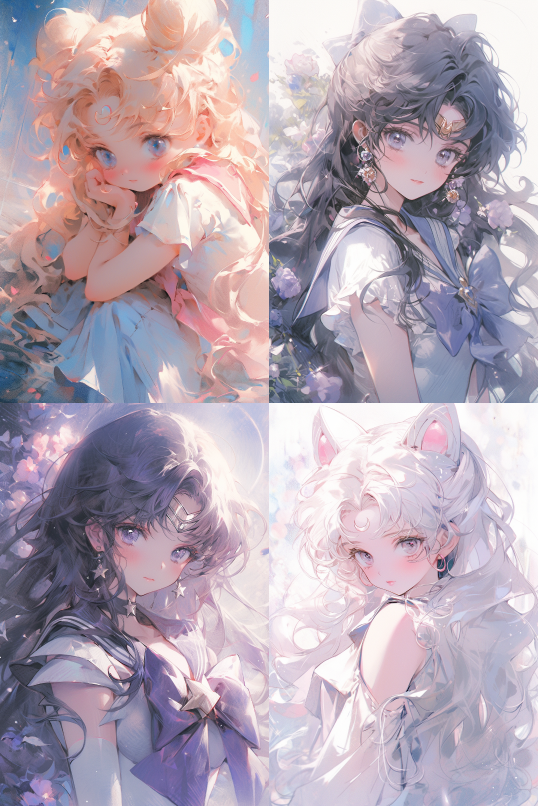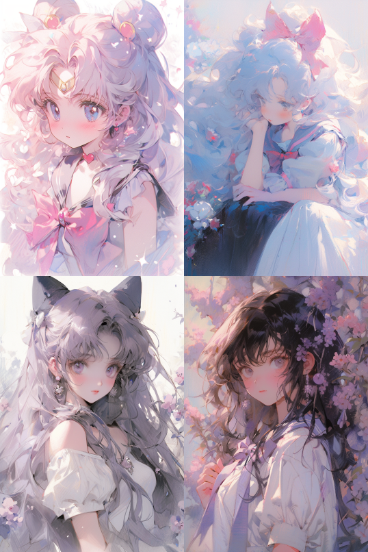 Midjourney Bot 更新时间:2023-08-29 01:27A Kimoto Sakura, Magic Girl Sakura, cut face, upper body, sitting, front, watercolor texture, oil painting texture, oil painting, Pastel: 2, Dream colors, Lavender tones ,Sailor Moon ,Matte::2 --ar 4:3 --niji 5 --s 750