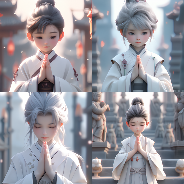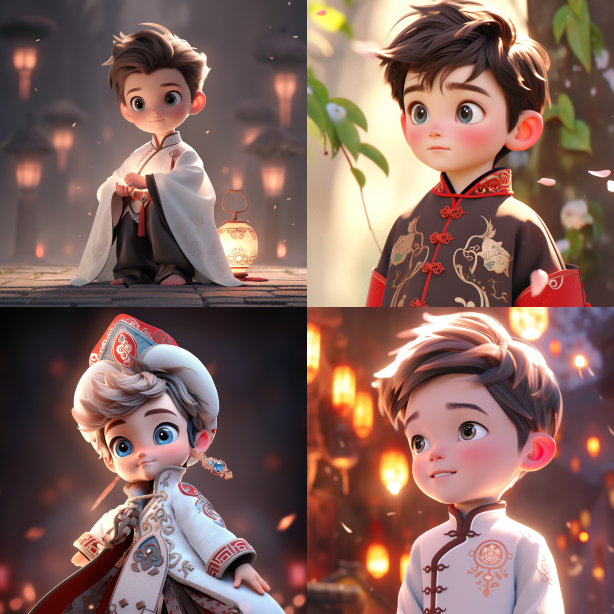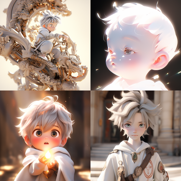 Midjourney Bot 更新时间:2023-08-29 01:21Chinese style, cut boy, light white and light silver styles, childlike innocence, classicism, carefully designed, 3D, c4d, super detail, animated lighting, defocus, perfect detail, FHD, 4K, 8K, HD, HDR --s 110 --c 2 --iw 2 --ar 1:1 --niji 5