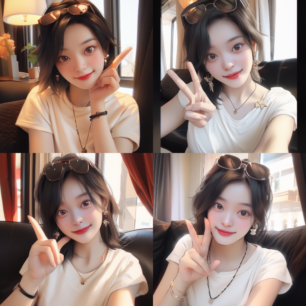 Midjourney Bot 更新时间:2023-08-29 01:571 girl, Jewelry, solo, necklace, v, looking at viewer, selfie, smile, brown eyes, ear on head, ears, realistic, black hair, bracelet, brown hair, indoors, upper body, ring, lips, window, short hair --iw 2 --ar 1:1 --niji 5