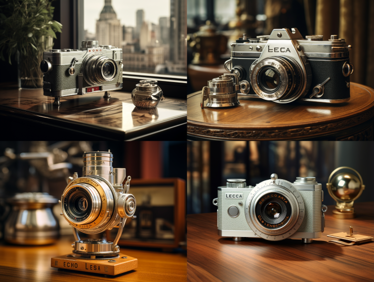 Midjourney Bot 更新时间:2023-08-29 00:57There is a Leica camera on the table,Retro-futurism,Ultra wide view shot,Award-winning,high resolution,rococo architecture,Vintage lens --ar 4:3 --style raw --v 5.2