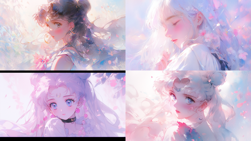 Midjourney Bot 更新时间:2023-08-29 01:16A Kimoto Sakura, Magic Girl Sakura, cut face, upper body, sitting, front, watercolor texture, oil painting texture, oil painting, Pastel: 2, Dream colors, Lavender tones, Sailor Moon,Matte --ar 16:9 --niji 5