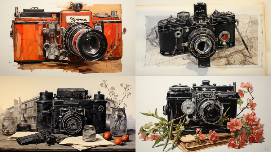 Midjourney Bot 更新时间:2023-08-29 01:18Leica camera,Pencil drawing,Scratchboard art,Linocut print,library background,Samuel Peploe --ar 16:9 --style raw --v 5.2 --s 750