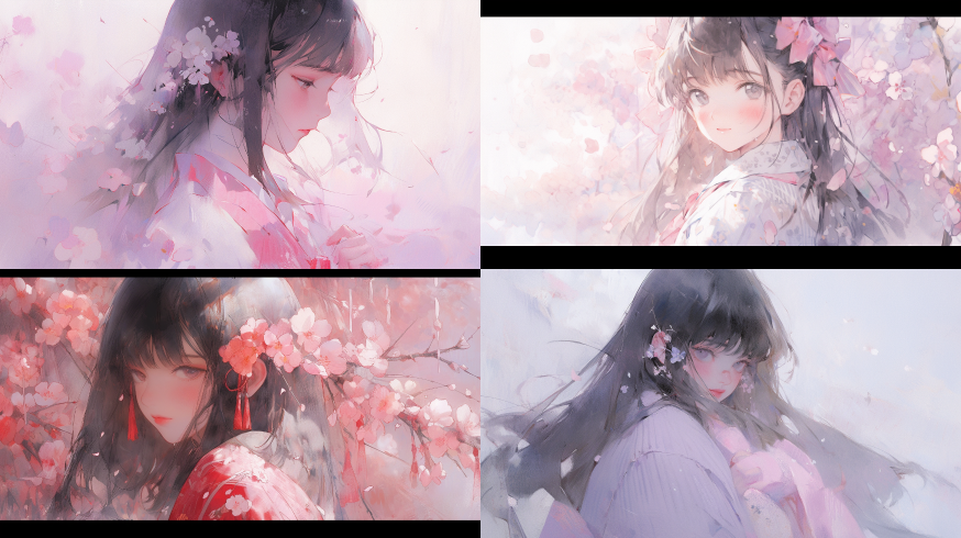 Midjourney Bot 更新时间:2023-08-29 00:54A Kimoto Sakura, Magic Girl Sakura, cut face, upper body, sitting, front, watercolor texture, oil painting texture, oil painting, Pastel: 2, Dream colors, Lavender tones,,Jigoku Shoujo ,Inuyasha --ar 16:9 --niji 5