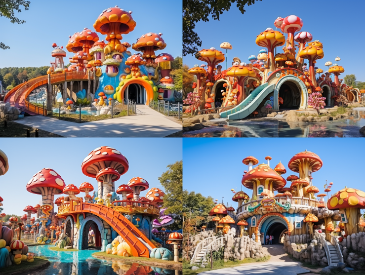 Midjourney Bot 更新时间:2023-08-28 23:56The Shining Mushroom Water Slide at the Gate of the Ecological Fairy Tale Kingdom, Colorful and Fantastic Stones --c 8 --ar 4:3 --style raw --v 5.2 --s 750