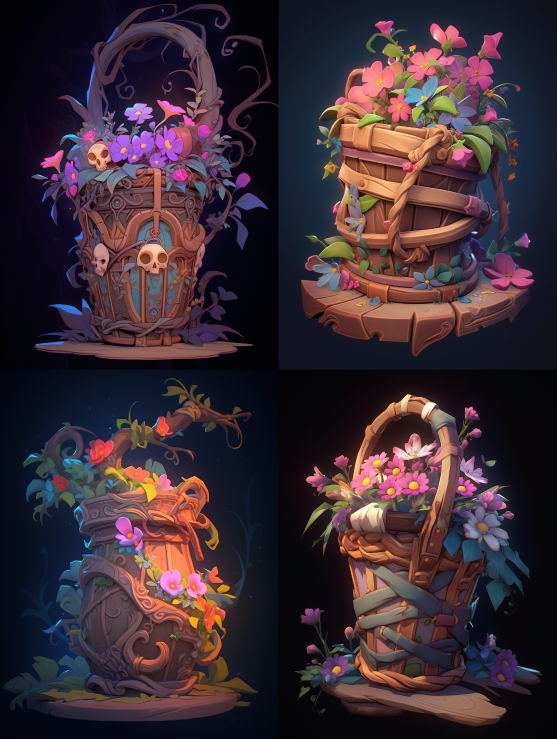 Midjourney Bot 更新时间:2023-08-28 23:48Mystological weapon, a basket, with flowers interwoven, colors, incremental light effects, and an empty background --s 180 --ar 3:4 --style expressive --niji 5
