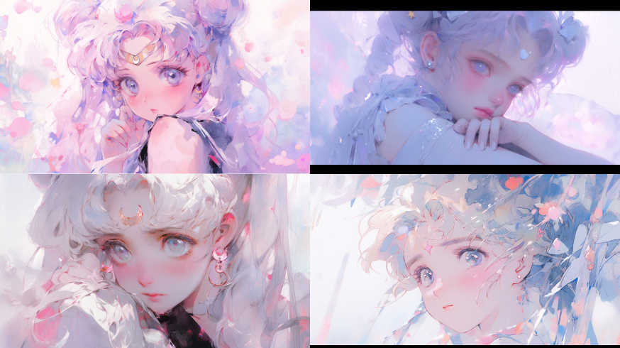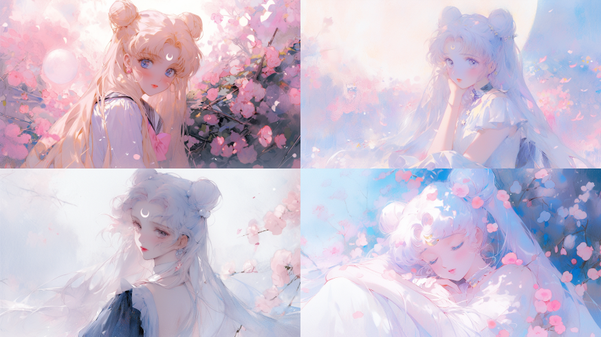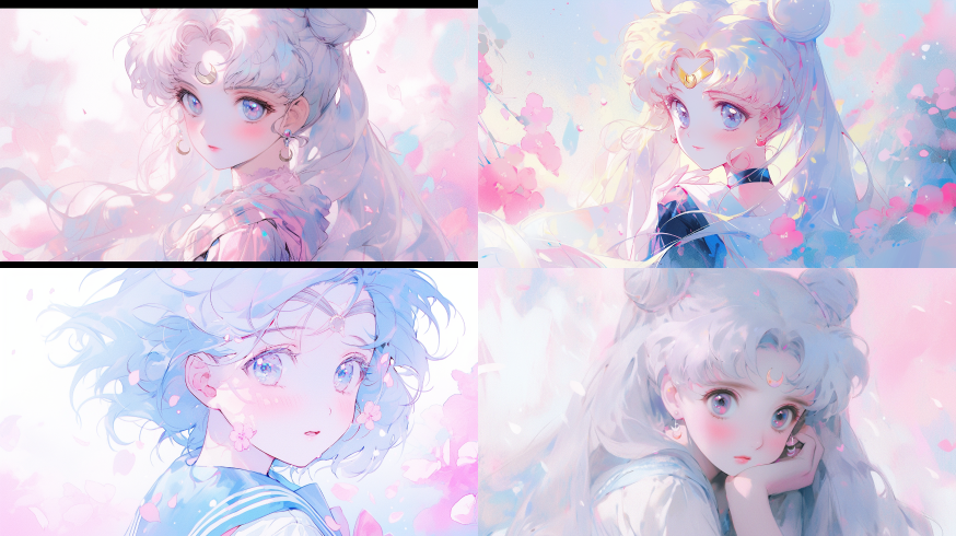 Midjourney Bot 更新时间:2023-08-29 00:32A Kimoto Sakura, Magic Girl Sakura, cut face, upper body, sitting, front, watercolor texture, oil painting texture, oil painting, Pastel: 2, Dream colors, Lavender tones ,Sailor Moon ,Sailor Moon,sky Blue color,garden background --ar 16:9 --niji 5