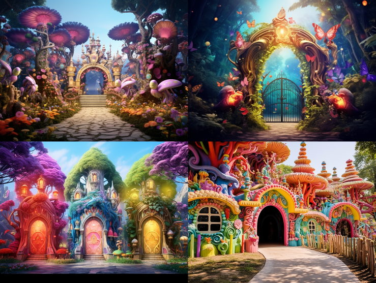 Midjourney Bot 更新时间:2023-08-29 00:00Ecological Fairy Tale Kingdom Gate: Colorful, Dreamy, and Fantastical. --s 144 --c 24 --iw 0.5 --ar 4:3 --style raw --v 5.2