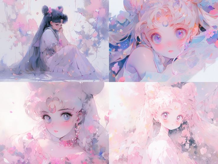 Midjourney Bot 更新时间:2023-08-29 00:27A Kimoto Sakura, Magic Girl Sakura, cut face, upper body, sitting, front, watercolor texture, oil painting texture, oil painting, Pastel: 2, Dream colors, Lavender tones ,Sailor Moon ,Sailor Moon --ar 4:3 --niji 5