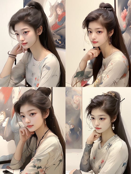 Midjourney Bot 更新时间:2023-08-28 21:47Chinese traditional painting style, Tang Dynasty style, portrait face close - up, a handsome beauty, wearing white clothes, has a good face, fair and smooth skin, delicate face, sharp eyes, clear eyebrows, super clear Close - up of the face, super cold expression, flying hair, flowing sleeves, the style of the ancient Sui and Tang Dynasties, the painting style refers to Qiu Ying and Song Huizong, wind dancing posture, Face Shot( VCU) , Point - of - view( POV) --ar 3:4 --niji 5 --s 180
