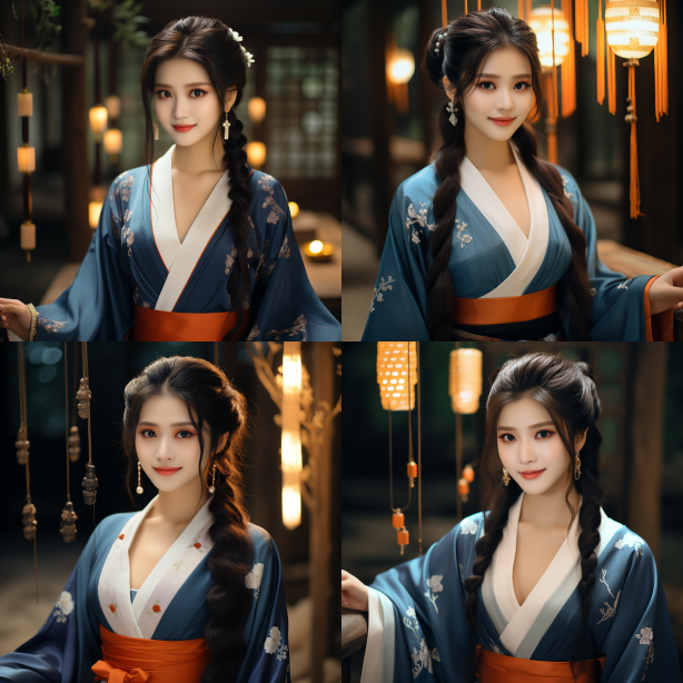 Midjourney Bot 更新时间:2023-08-28 21:49Stand up, with a smile on your face, wearing a deep blue Hanfu. --iw 2 --ar 1:1 --style raw --v 5.2 --s 750