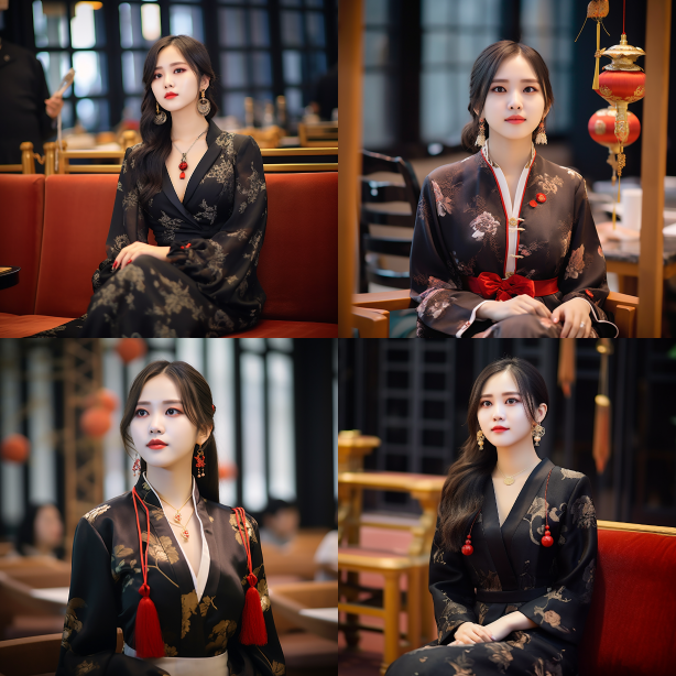 Midjourney Bot 更新时间:2023-08-28 21:47Height 160cm, large face, large eyes, small dimples on the face, plump figure, long black hair, high heels, slightly chubby, Chinese style black qipao, black long and straight hair, charming smile, fat on face, hands, and feet,Wide angle lens --s 180 --ar 1:1 --style raw --v 5.2
