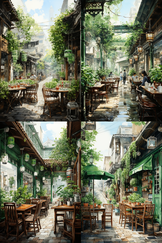 Midjourney Bot 更新时间:2023-08-28 21:47Watercolor painting, a Chinese herbal tea shop, Hong Kong style shop, green and white mosaic tiles, with a few customers walking and sitting in the shop,high resolution,16K,delicate skin texture --c 1 --ar 2:3 --style raw --v 5.2 --s 750