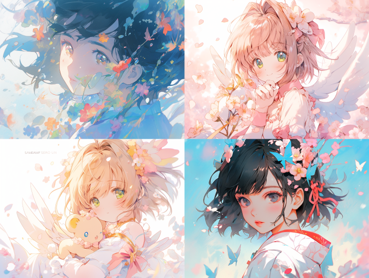 Midjourney Bot 更新时间:2023-08-28 19:01Kinomoto Sakura from Card Captor Sakura by clamp,green eyes,Cute blue combat uniform,Holding flowers, Sailor Moon style,oil painting texture,oil painting,Pastel::2 ,Dream colors ,Light-Blue::2 ,Dream colors,high resolution,16K --ar 4:3 --niji 5
