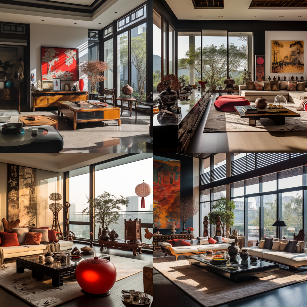 Midjourney Bot 更新时间:2023-08-28 19:45Hollow living room, floor to ceiling Windows,Bamboo,Chinese dragon,Chinese ink,Chinese calligraphy,Chinese ink,Tri-color Pottery of the Tang Dynasty,Cloisonne,Mooncakes,Chinese Martial Arts,Tangyuan,Vermilion bird --ar 1:1 --style raw --v 5.2